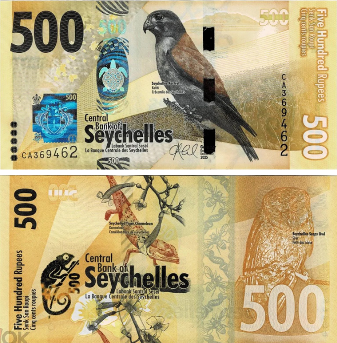 23 декабря 2025 года официально подтверждён выпуск новой банкноты 500 рупий Сейшельских островов . Новый вариант аналогичен , однако не содержит защитную нить Optics, что делает его отдельной разновидностью, представляющей интерес для коллекционеров.
