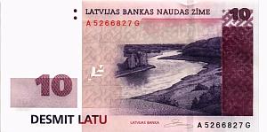На сегодняшний день в обращении республики находятся деньги номинальной стоимостью 5, 10, 20, 50, 100, 500 LVL. Их оформление отличается своеобразием. На внешней стороне изображены (по возрастанию номинала) дерево, вид на реку Даугава, музей, парусное судно, литератор Кришьянис Барон и девушка в национальном костюме. Реверс всех бон украшен орнаментом.