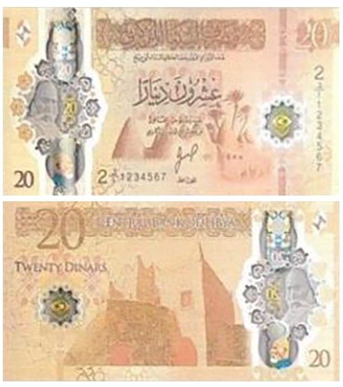20 марта 2025 года Центральный банк Ливии официально выпустил в обращение новую полимерную банкноту номиналом 20 динаров.
