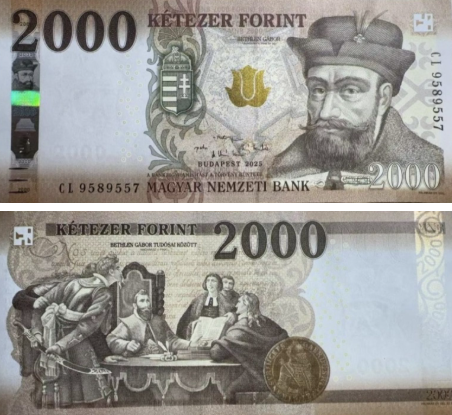 Magyar Nemzeti Bank обновил банкноту 2 000 форинтов с подписями Patai / Matolcsy / Kandrács / Virág и датой 2025.