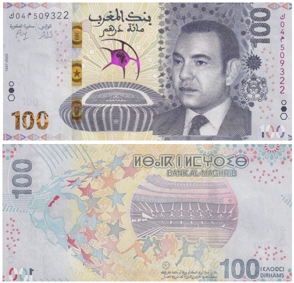 22 декабря 2025 года Bank Al-Maghrib центральный банк Королевства Марокко ввёл в обращение памятную банкноту номиналом 100 дирхамов, приуроченную к проведению в стране 35-го Кубка африканских наций по футболу (AFCON 2025).