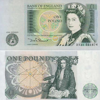 Англия: Исаак Ньютон на банкноте 1 фунт