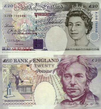 Англия: Майкл Фарадей на банкноте 20 фунтов