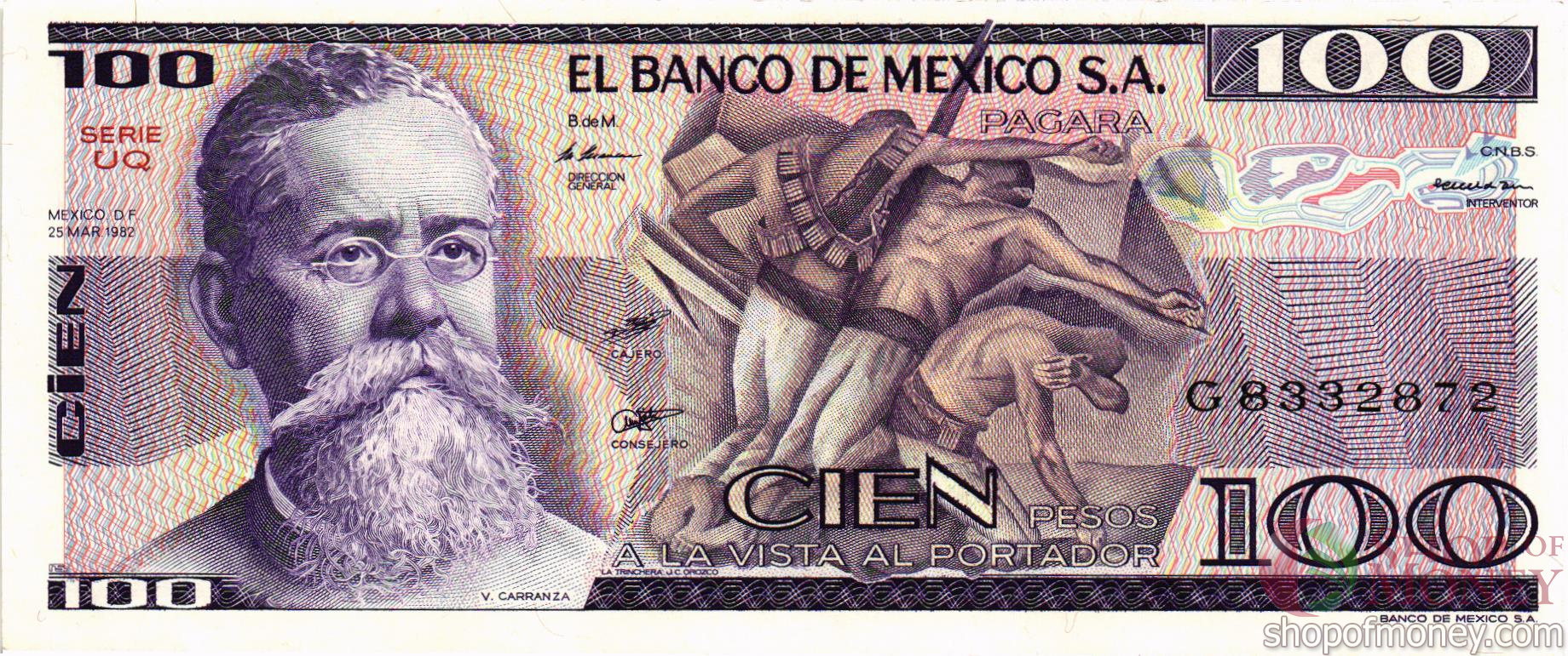 Австралия МЕКСИКА 100 ПЕСО (-UQ- СЕРИЯ) 1982 ГОДА, Pick 74c