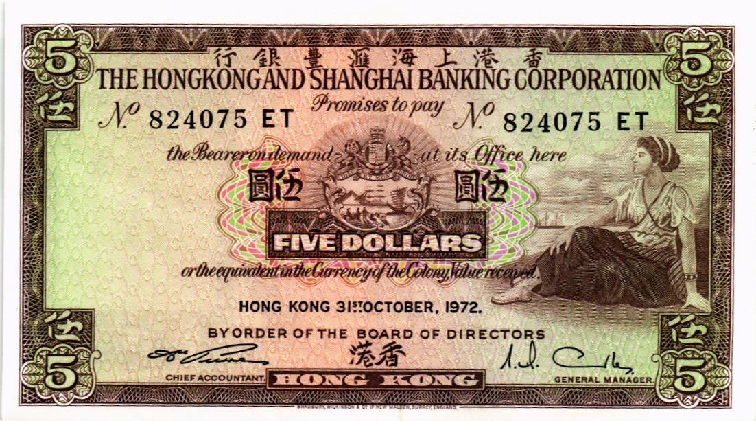 Австралия ГОНКОНГ 5 ДОЛЛАРОВ (HSBC) 31.10.1972 1972 ГОДА, Pick 181e
