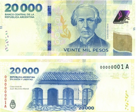 Аргентина регулярно сталкивается с высокой инфляцией, что вынуждает Центральный банк выпускать банкноты всё более высоких номиналов.