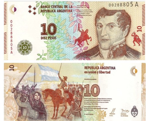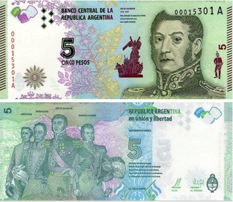 Примечание: банкноты номиналом 5 и 10 песо не входят официально ни в одну из обозначенных Центральным банком серий. Однако их оформление с изображениями национальных героев (Хосе де Сан-Мартин и Мануэль Бельграно) логично связывает их с более поздней серией «Герои нации». Эти банкноты можно рассматривать как патриотические выпуски с героико-историческим уклоном.
