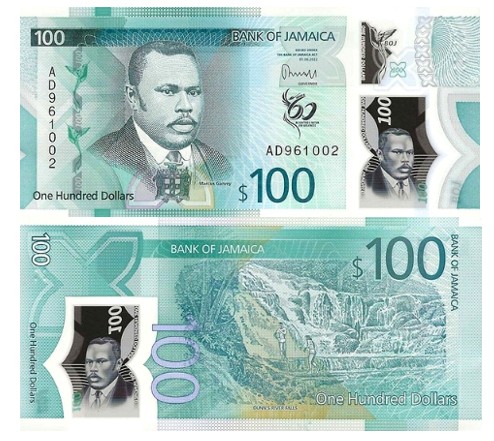 100 долларов Ямайки образца 2022 года современная полимерная банкнота, выпущенная Bank of Jamaica в честь 60-летия независимости страны от Великобритании (1962–2022).