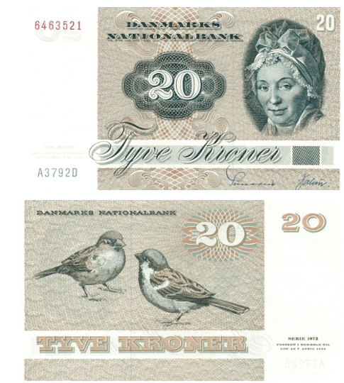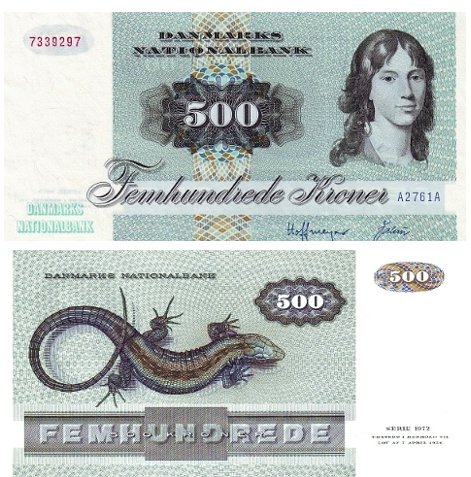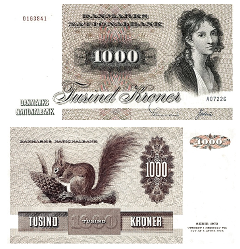Дизайн объединил два символа: женский портрет на лицевой стороне (вдохновлённый картинами классического художника Йенса Юэля) и животное на обороте, олицетворяющее природу Дании. Эти банкноты стали не просто платёжным средством, но и своеобразной энциклопедией датской красоты, искусства и фауны.