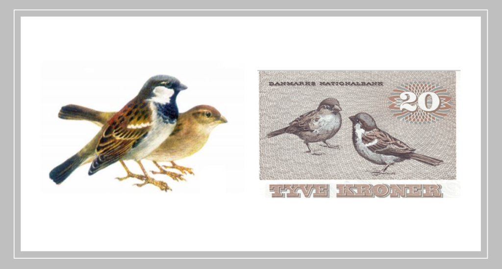 20 крон Pauline Maria Tutein / Паулина Мариa Тутейн и воробьи (Passer domesticus)
