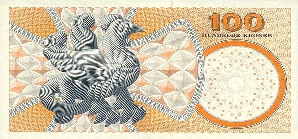 100 крон (1993), на внешней стороне – Йенс Джуэл, художник, на обратной – бабочка «орденские ленты».