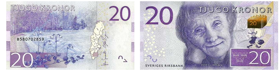 На оборотной стороне — живописный пейзаж Смоланда, родного края писательницы.