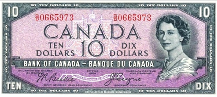 Канада 10 долларов P 79, 1954