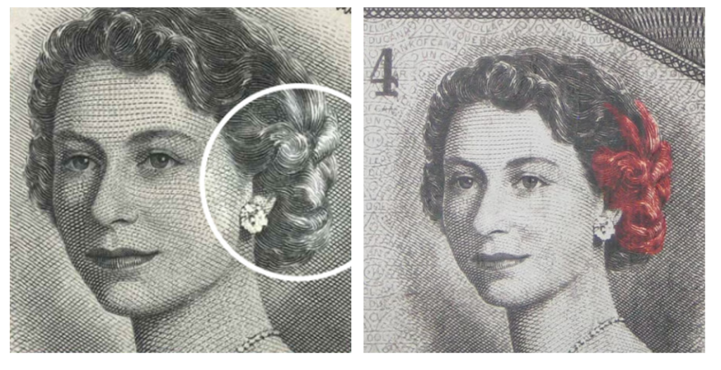 Важно отметить, что эффект «дьявольских кудрей» был характерен не только для одного номинала, а для всей серии канадских банкнот 1954 года. Этот визуальный феномен встречался на всех номиналах банкнот, выпущенных в том году: