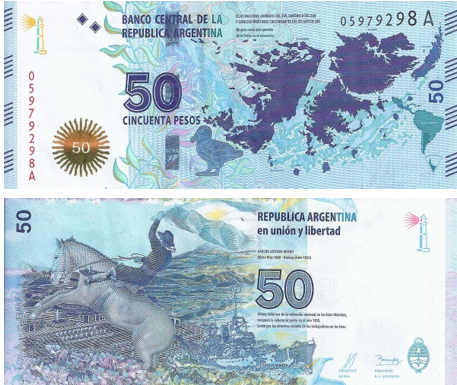 Буэнос-Айрес не оставляет надежд на возвращение территорий и напоминает об этом своим гражданам. В 2015 году Центробанк Аргентины напечатал банкноты номиналом в 50 песо, в центре которых нарисована схематичная карта Мальвин. Оборотная сторона проникнута трагизмом – на заднем фоне изображено кладбище павших аргентинских солдат и крейсер «Генерал Бельграно», потопленный британской подводной лодкой. При крушении корабля погибло 323 моряка – половина потерь Аргентины в войне 1982 года.