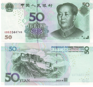 На лицевой стороне банкноты Китайской Народной Республики, номиналом в 50 юаней 2005 года, изображен Великий кормчий — Мао Цзэдун. На оборотной стороне же размещен дворец Потала в Лхасе. Этот дворец является бывшей резиденцией правителя Тибета — далай-ламы.