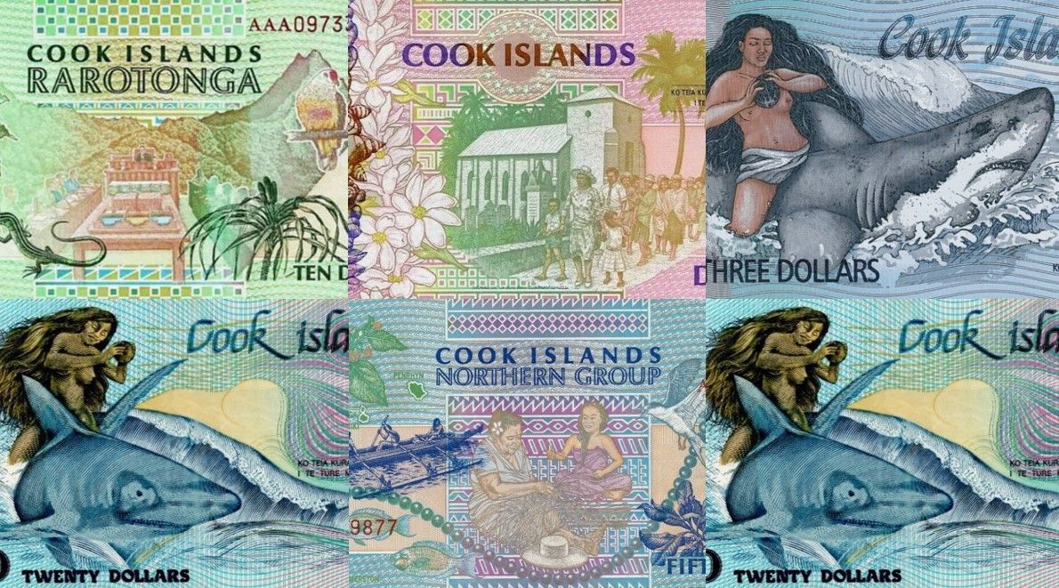 В 1987 году правительство Островов Кука выпустило первую серию банкнот номиналом 3, 10 и 20 долларов. Дизайн этих банкнот отражает мифологию и культуру Островов Кука.