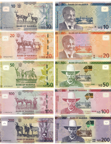 200 NAD | Фиолетовый | 152×70 | P-15 | Хендрик Витбой, парламент | Лошадиные антилопы |