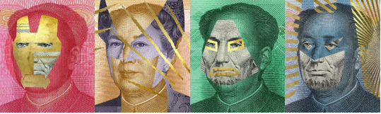 В 2015 году итальянский художник Алессандро Рабатти представил проект Facebank, в котором лица мировых лидеров с банкнот — Мао Цзэдун, Елизавета II, Авраам Линкольн — были переосмыслены в образах супергероев: Бэтмена, Спайдермена, Капитана Америка. Проект стал метафорой глобализации и культурной унификации мировых рынков — Азии, Европы и Америки.