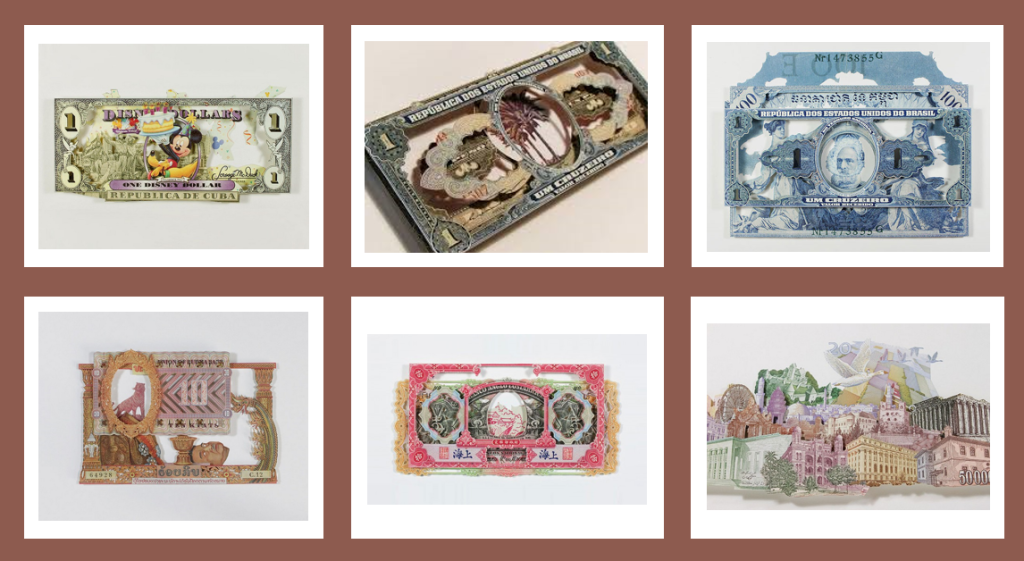 Художник из Рио-де-Жанейро Родриго Торрес вырезает элементы с банкнот разных стран и создаёт объемные коллажи. В одной работе могут сочетаться Микки Маус и кубинская купюра, швейцарский франк и китайский юань. Его коллажи — визуальный диалог между культурами и экономиками. В 2012 году его работы были представлены на Art Basel в Швейцарии.