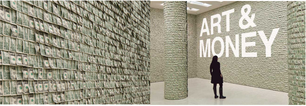 После получения престижной премии Гуггенхайма в 2010 году немецкий художник Ханс-Петер Фельдманн буквально повесил свою награду на стену. В рамках персональной выставки он покрыл стены музея 100-тысячами купюр в $1. Монтаж занял 13 дней и стал самой яркой иллюстрацией идеи "деньги как искусство".