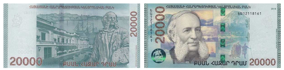 Банкнота: 20 000 драмов, 2018 г., P-W65 (серия 2017–2024)