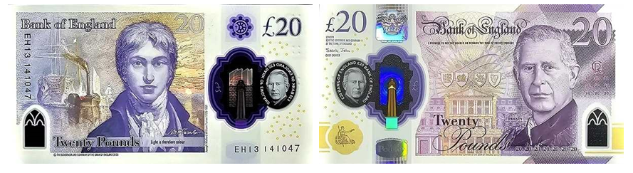Банкнота: 20 фунтов, 2023 г.,P-W400 — с портретом Карла III