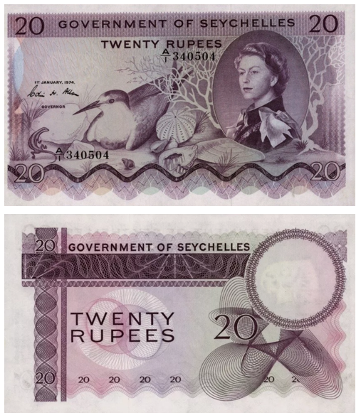 Каждая банкнота этой серии объединяет британский классический стиль и уникальную природу Сейшел.