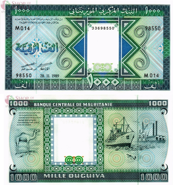 Вторая невыпущенная банкнота 1000 угий 1989 года.