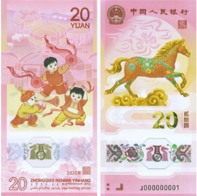 Народный банк Китая (Народный банк Китая) объявил о выпуске новой памятной банкноты номиналом 20 юаней, посвящённой 2026 году Году Лошади по китайскому зодиаку.