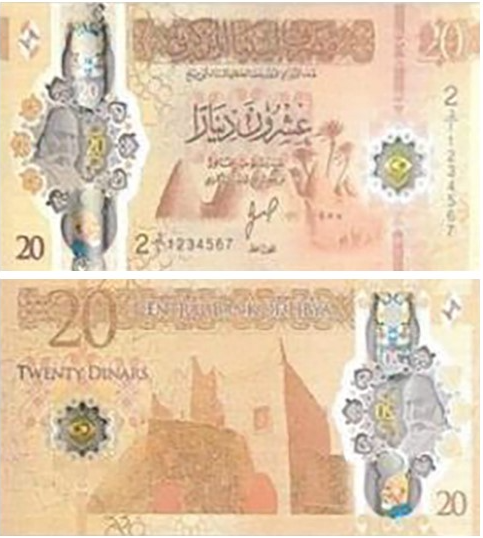 20 марта 2025 года Центральный банк Ливии официально выпустил в обращение новую полимерную банкноту номиналом 20 динаров.