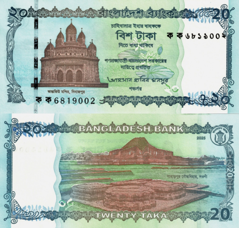 В 2025 году Бангладеш Банк начал выпуск новой масштабной серии банкнот под названием “Historical and Archaeological Architecture of Bangladesh”. Это крупнейшее обновление валюты страны за последние годы, объединяющее важнейшие архитектурные памятники, государственные символы и современную технологическую защиту.