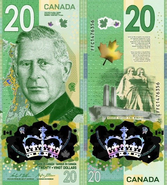 Австралия Новый дизайн канадской банкноты 20 долларов: король Карл III и мемориал Вими