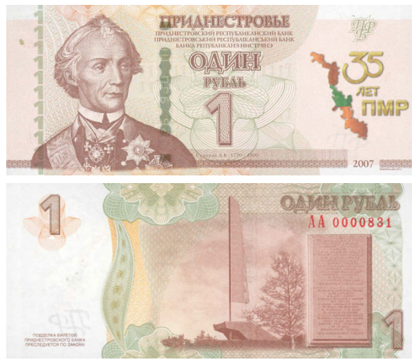 Приднестровский республиканский банк выпустил памятную банкноту номиналом 1 рубль, посвящённую 35-летию ПМР.
