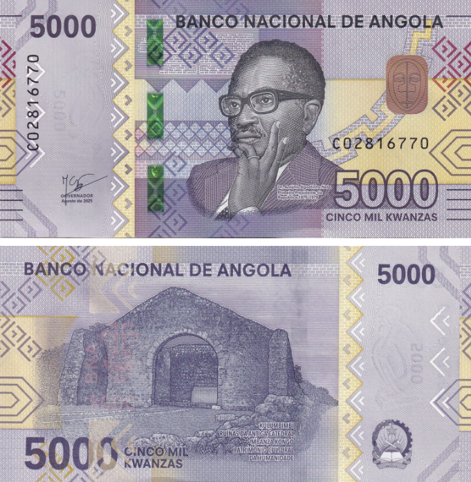 Центральный банк Анголы представил банкноту номиналом 5000 кванз с датой август 2025 года.