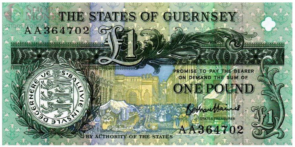 £1 Гернси одна из последних банкнот такого номинала, до сих пор обращающаяся наряду с монетой.