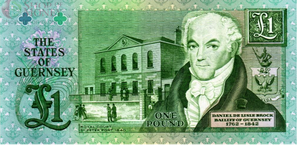 Современная банкнота номиналом один фунт Гернси (Pick 52) была выпущена в начале 1990-х годов и до сих пор находится в обращении. Она объединяет исторические символы острова — рынок, суд и образ Брока, человека, подарившего Гернси собственные деньги.