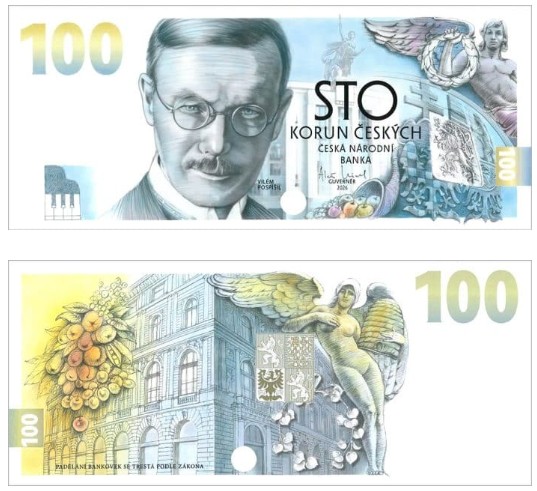 21 января 2026 года Česká národní banka ввела в обращение третью памятную банкноту номиналом 100 Kč, посвящённую становлению чехословацкой валюты. Центральной фигурой выпуска стал Vilém Pospíšil — первый управляющий Национального банка Чехословакии.