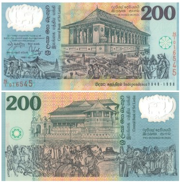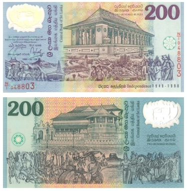 В честь 50-летнего юбилея независимости (1948–1998) Центральный банк Шри-Ланки выпустил памятную банкноту номиналом 200 рупий. Этот выпуск не только отмечал важное историческое событие, но и стал одним из первых примеров использования полимерных банкнот в стране.
