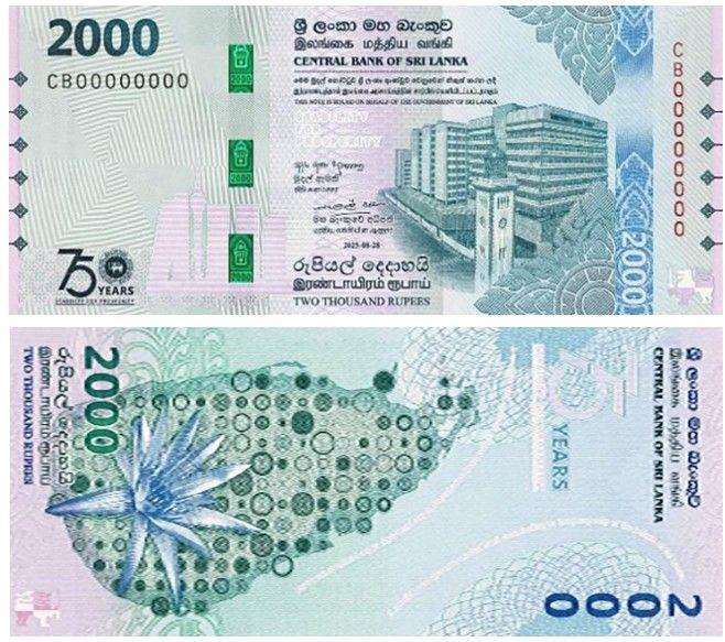 29 августа 2025 года Центральный банк Шри-Ланки выпустил памятную банкноту номиналом 2000 рупий (Pick B131). Этот выпуск приурочен к 75-летию Центрального банка и проходит под девизом «Stability for Prosperity» («Стабильность во имя процветания»). В обращение поступило 50 миллионов экземпляров, что делает банкноту массовой, но одновременно привлекательной для коллекционеров.