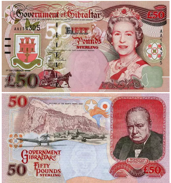 Банкнота Гибралтара номиналом £50 образца 2006 года представляет интерес как с нумизматической, так и с историко-политической точки зрения. Её дизайн включает образы ключевых фигур и символов британской идентичности: портрет Уинстона Черчилля, королеву Елизавету II, Гибралтарскую скалу и объекты военной инфраструктуры времён Второй мировой войны.Сэр Уинстон Черчилль скончался 24 января 1965 года в возрасте 90 лет. Его наследие как символа мужества, устойчивости и лидерства в труднейшие моменты истории прочно закреплено в мировой памяти. Изображение Черчилля на гибралтарской банкноте подчёркивает не только военную и политическую связь территории с Великобританией, но и уважение к фигурам, сыгравшим решающую роль в судьбе Европы.