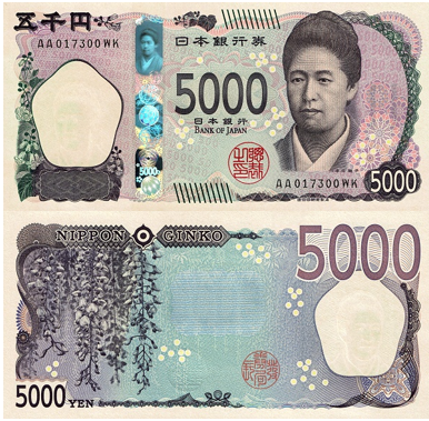 Как Вы уже убедились в настоящее время на японских банкнотах печатаются портреты людей периода Мэйдзи и более поздних лет. Причина этого в том, что с точки зрения предотвращения подделок желательно использовать в качестве оригинала точную фотографию, а не картину для портрета.