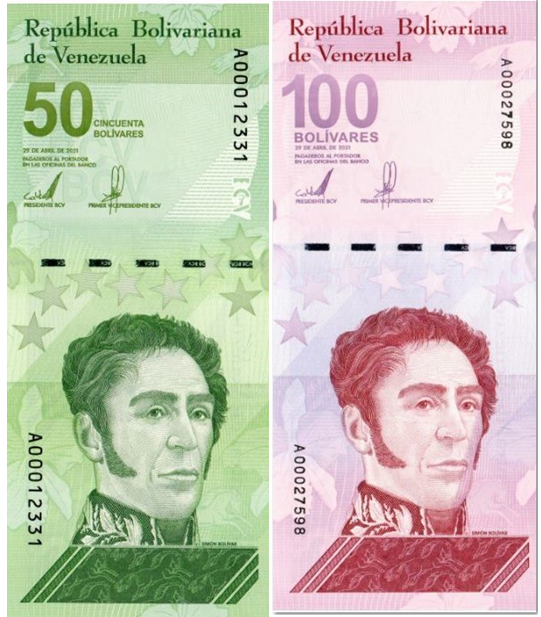 Центральный банк Венесуэлы анонсировал выпуск двух новых банкнот номиналом 50 и 100 Боливар . Новинки должны поступить во второй половине 2022.